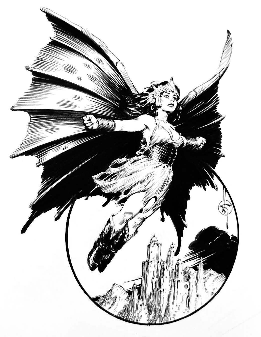 So, the Va-gas capture Na-hee-lah, the gorgeous princess of Laythe, one of the truly civilized lands of Va-nah. Her people fly with the aid of artificial wings and Lunarian gravity. A literal angel with a broken wing. Her ancestral people are the U-ga, an advanced, somewhat feudal civilization which was destroyed from within. Julian and Na-hee-lah manage to escape. Check out this epic passage: