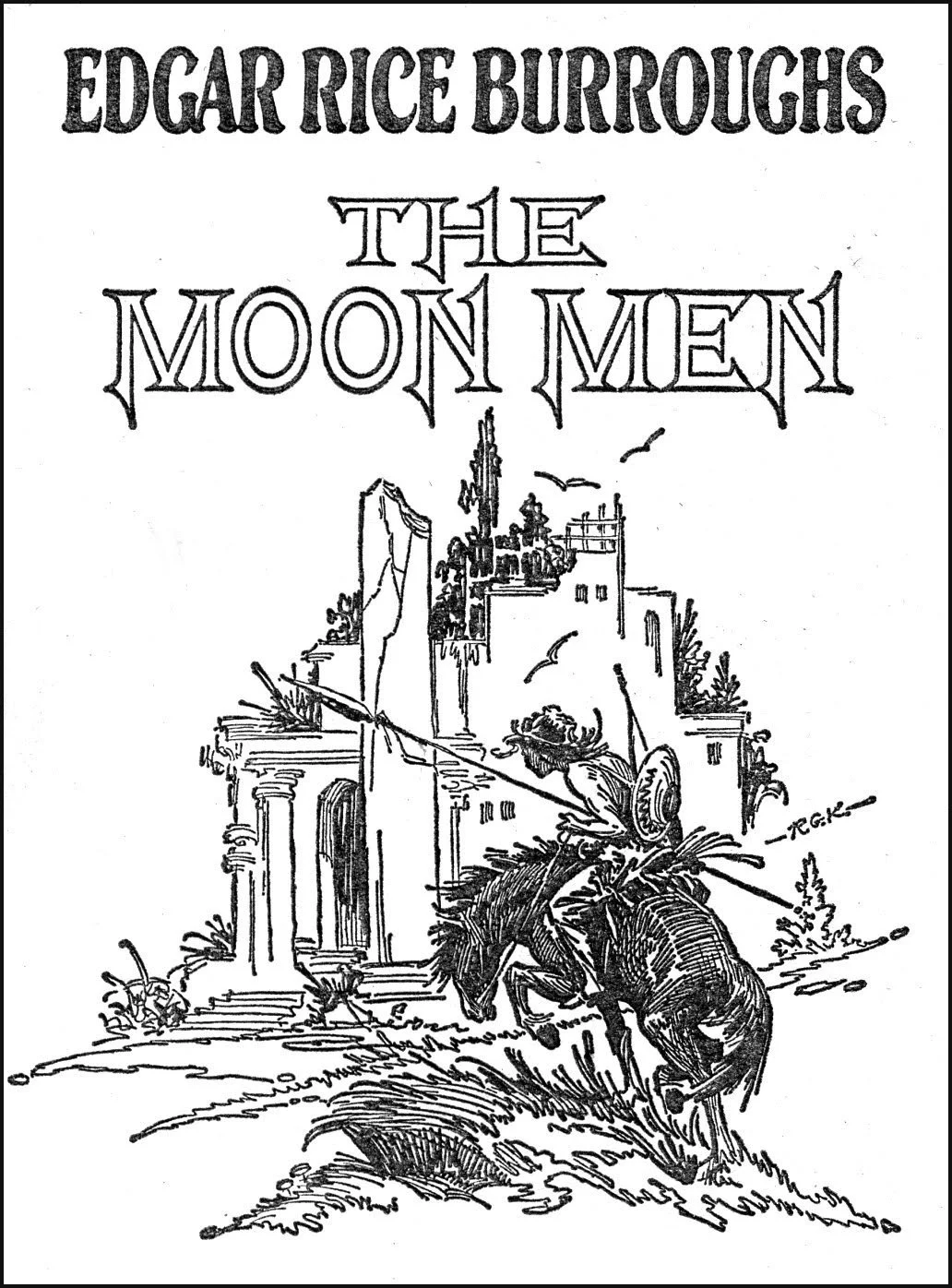 The Moon Trilogy is a very strange series for Edgar Rice Burroughs, with downer endings for the first two novels and recurring themes of decay, defeat and rebirth. The first volume, The Moon Maid, is a planetary romance of the sort that ERB pioneered. The framing device concerns the narrator meeting a strange man in the then-future of 1967, in a world where war is over and contact has been established with Mars (specifically, the Barsoom of ERB’s earlier novels). The man, Julian 3rd, who insists that there is no such thing as Time, warns of future calamities, via the memories of his future incarnations.